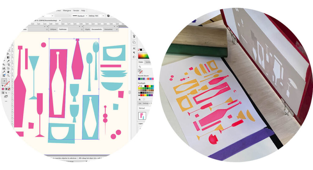 Voor een professionele én super creatieve cursus in de Adobe pakketten kom je naar Hoog Gras in Arnhem. Wat onze cursus uniek maakt is de combinatie van grafische programma’s met directe toepassingen in de kunst. Je gaat bijvoorbeeld in Illustrator ontwerpen maken voor zeefdruk, in Photoshop ontwerpen maken voor linosnede, je gaat tekeningen maken (voor je digitale Art Journal en/of portfolio) en deze omzetten naar een digitale illustratie in illustrator, of je gaat je zelf geïllustreerde boekje of kalender maken in illustrator, Photoshop en InDesign. Je werkt dus op de computer maar ook met diverse druktechnieken.